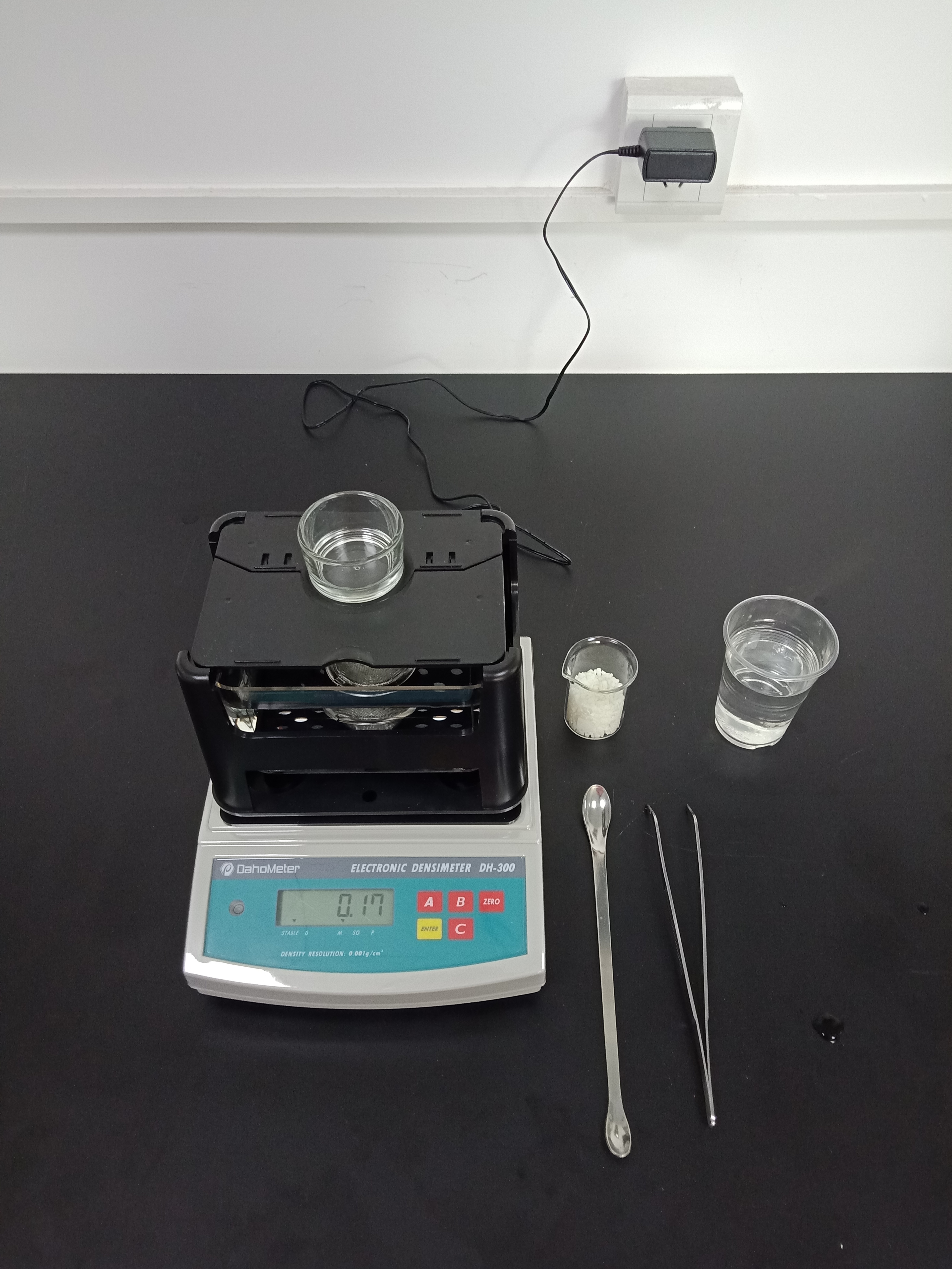 1,準(zhǔn)備好測(cè)試儀器DH-300,測(cè)試樣品和測(cè)試工具小玻璃杯一個(gè),小網(wǎng)球一個(gè),鑷子一把,勺子一個(gè),裝滿酒精的杯子一個(gè)
