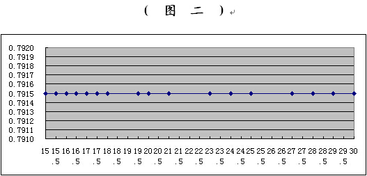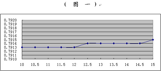 根據上述數據可以看出:如圖一所示在10~15℃,結果有偏離且無規律性。圖二所示,溫度在規定范圍內測定,密度隨溫度的變化可近似的看作直線關系。圖三所示,在30~35℃時結果數據偏大,但仍在允許誤差范圍內。圖四所示,在35~40℃時結果偏離太大。溫度較低時,試樣不易均衡。由于甲醇閃點較低,屬于易揮發物,溫度較高時,揮發較為劇烈,使試樣中水分含量變大,水的密度與甲醇密度相差較大,會直接影響測量結果,使結果偏大。故在測量時根據氣候、溫度的變化注意調節樣品的溫度。另外,注意液面以上的密度計管桿所沾試液不得超過兩個分度值,因為桿體上多余的液體會影響所得讀數。除此之外,還受最小分度值及測試人員視力的限制其準確度不能太高。