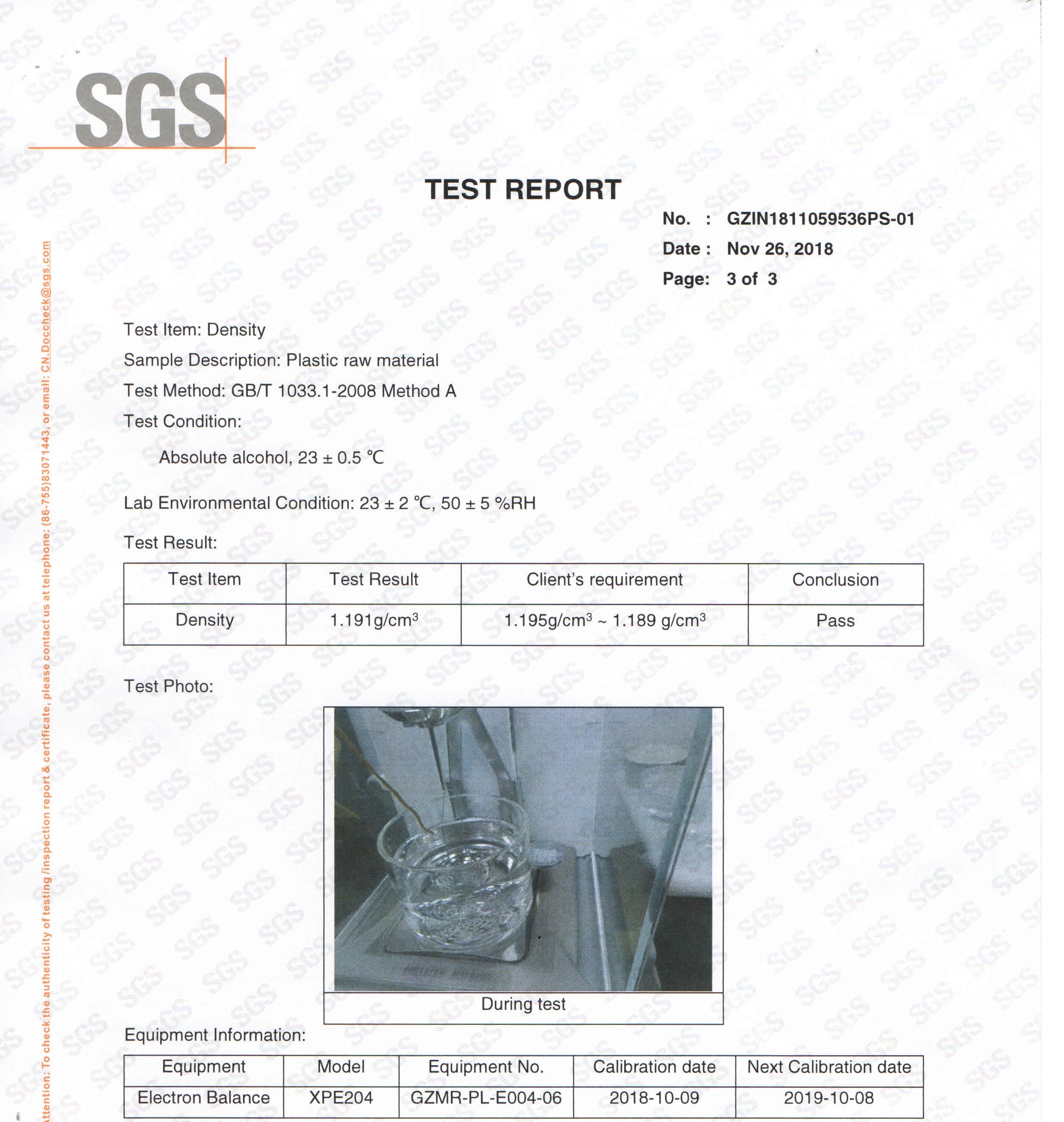 以東莞宏拓儀器為主導,與第三方研發公司共同研發,用于橡塑類行業密度測試準確性驗證的塑料密度標準物質,在經過雙方公司的共同攻克難點,數據共享,反復測試,并通過第三方權威機構SGS測試檢驗認證,現于2018年12月1日正式投向市場,標志著東莞宏拓儀器是國內唯一首家提供塑料密度標準物質的密度儀器制造商,SG001塑料密度標準物質可以用于日常密度測試結果的驗證,解決客戶在日常使用密度儀時需要自我校驗測試數據的需求。