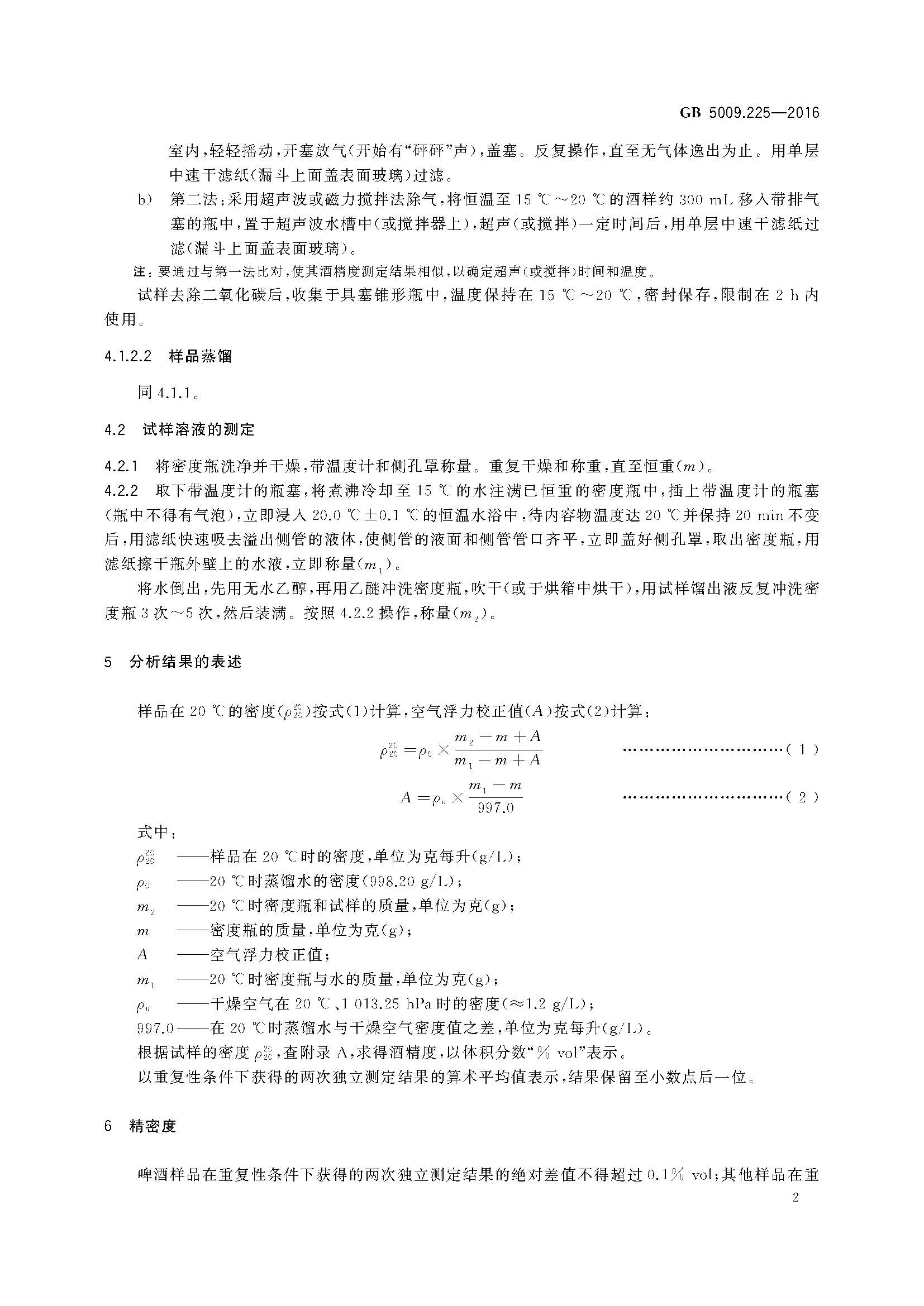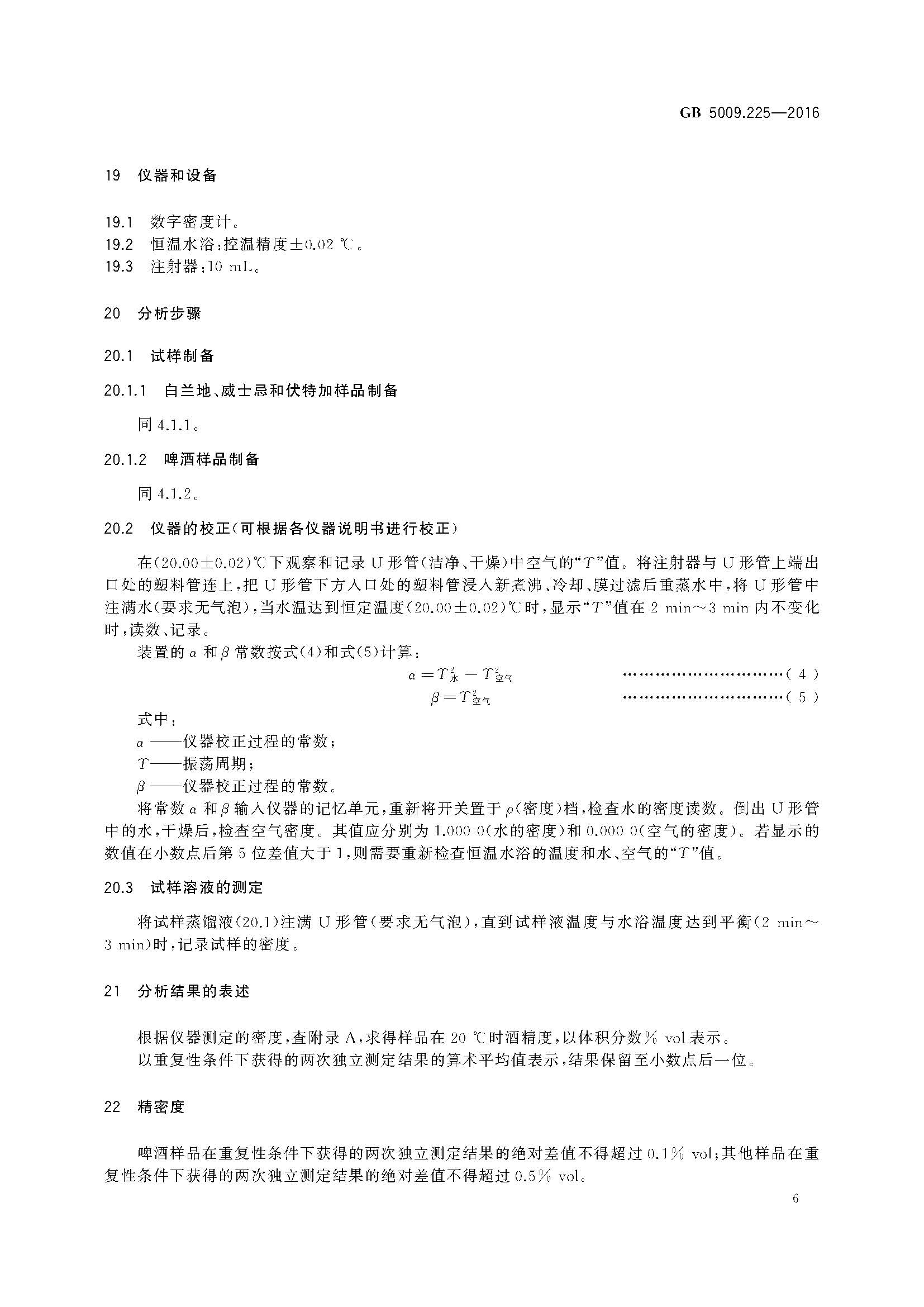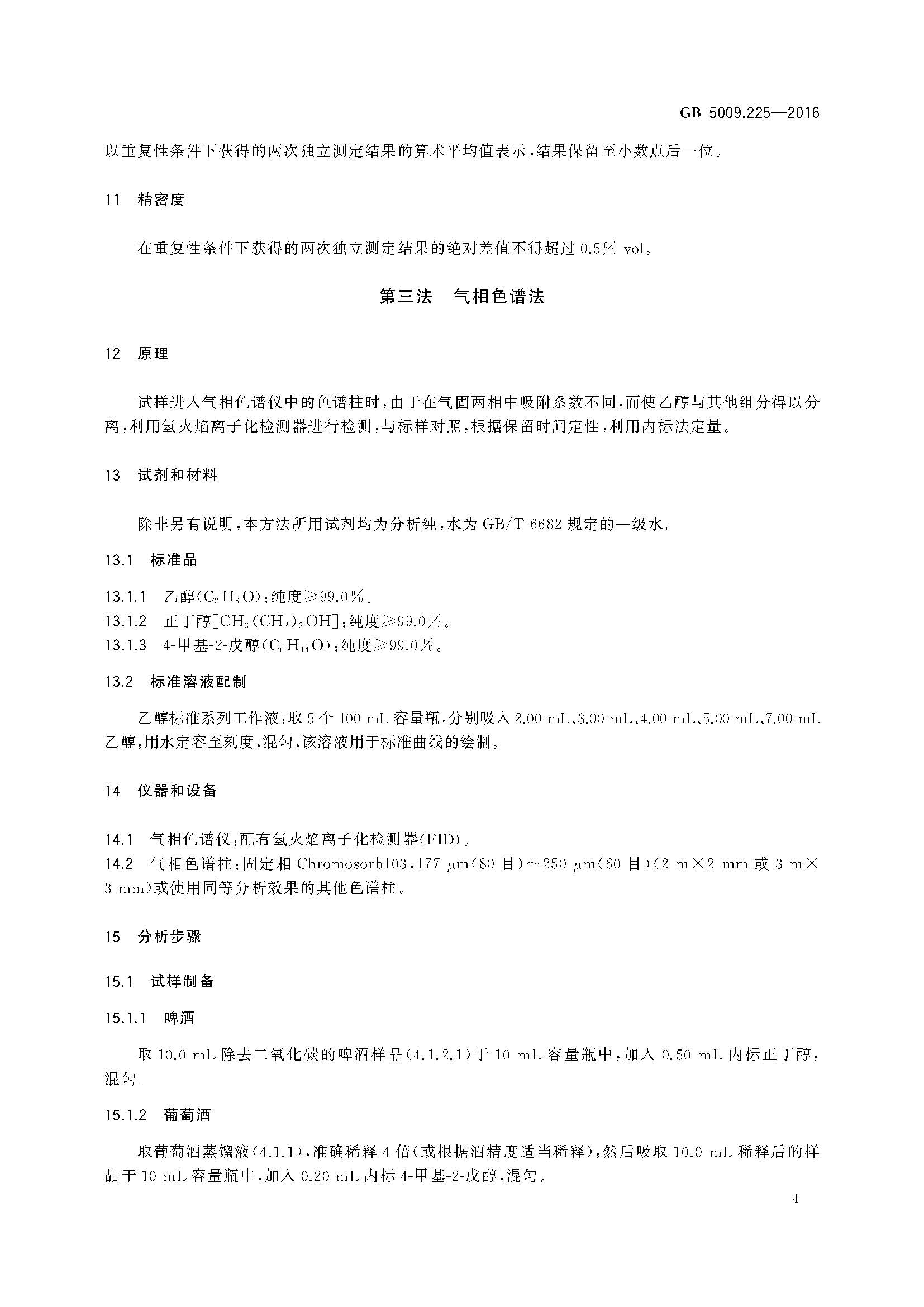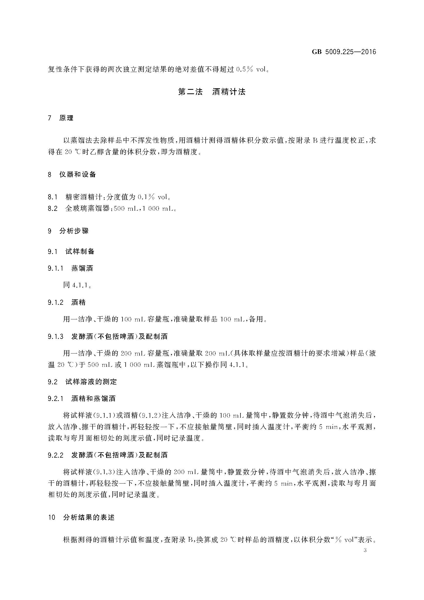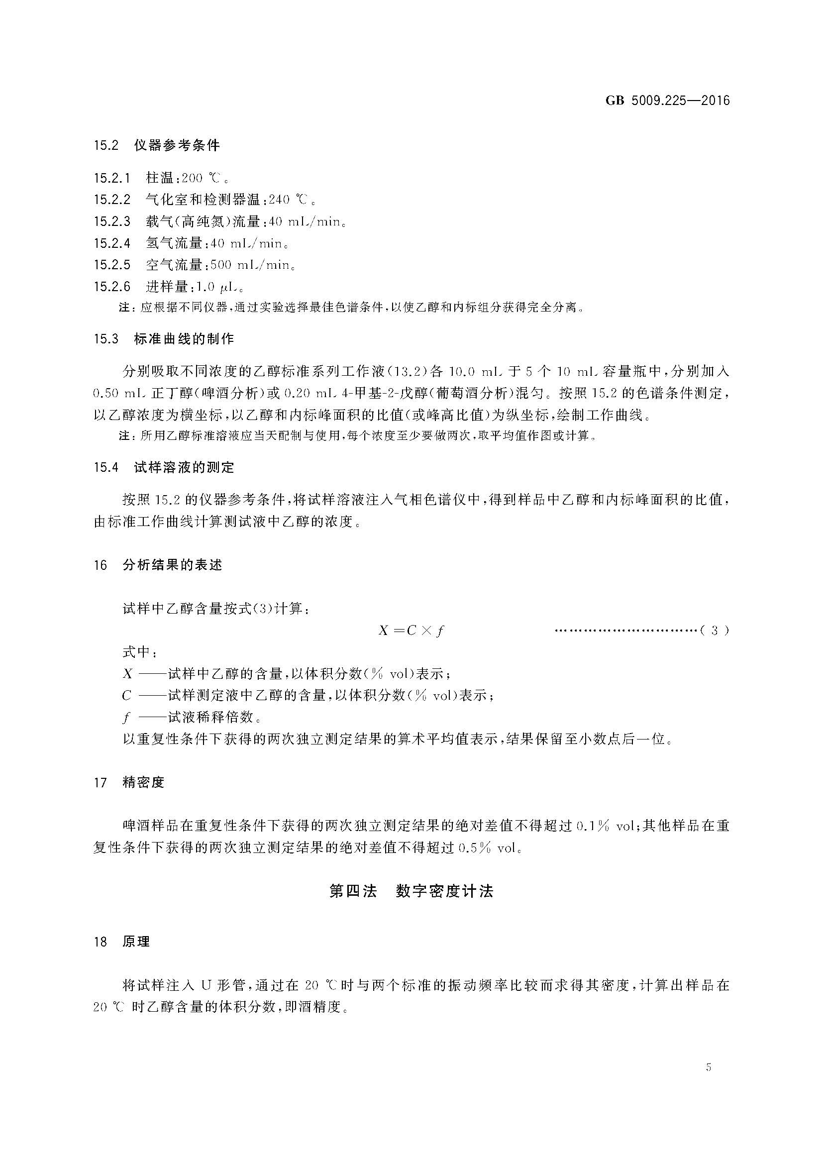 酒中乙醇濃度測定GB 5009.225-2016