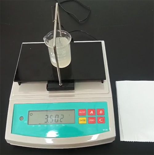 1、準備好一臺水玻璃模數測試儀DA-300WG,準備樣品。做好儀器準備工作(重量校正和水溫補償)。