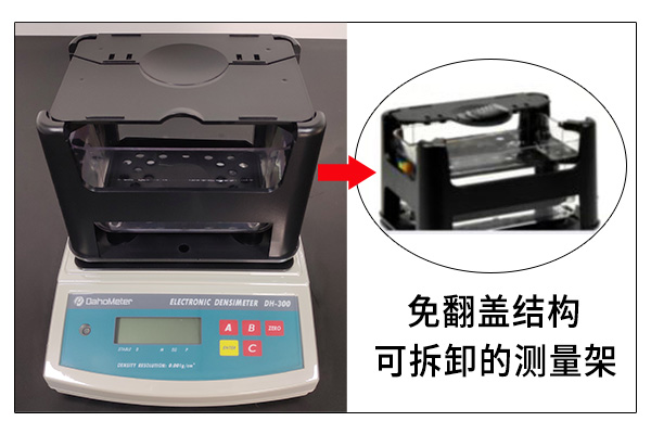 密度計的原理是阿基米德排水法原理,對應操作步驟需要對空中與水中的重量進行稱重,測試操作時間相當短,然而達宏美拓密度計的新型結構(免翻蓋結構)讓客戶在測試過程更快更快速測試。