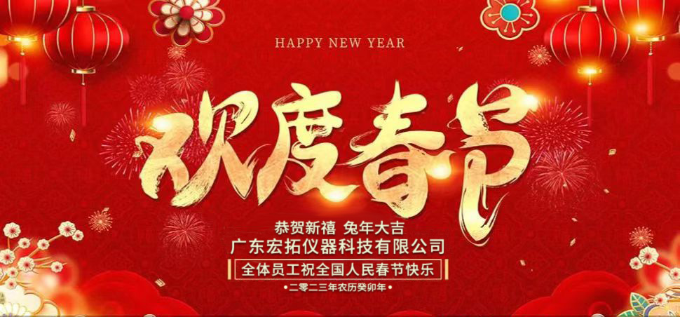 新年伊始,萬象更新,2023年春節(jié)的腳步聲聲將至,值此金兔迎春之際,首先對貴司再2022年對本公司的支持和通力合作表示衷心的感謝。過去的一年中,在您的支持和信賴下,我們才得以在激烈的市場環(huán)境下不斷大步挺進!在此廣東宏拓儀器科技有限公司全體同仁恭祝諸位:百業(yè)和順,財源廣進!