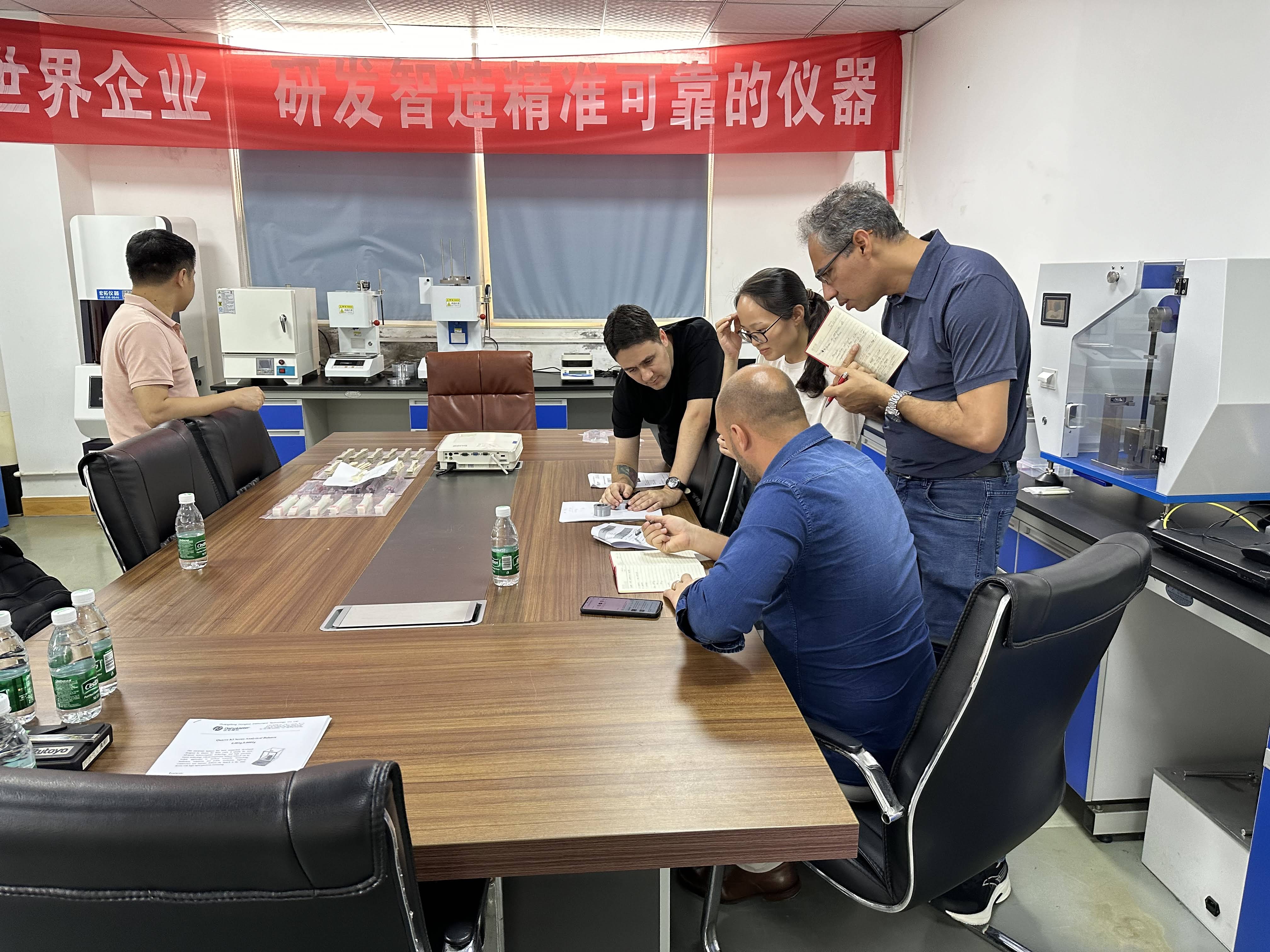 公司總經理鐘先生代表公司對巴西客戶的到來表示熱烈歡迎,并安排了細致的接待工作。在部門主要負責人的陪同下,客戶參觀考察了公司檢測實驗室,了解了各類最新款的檢測儀器、以及實驗室檢測儀器可持續發展的無限美好前景。