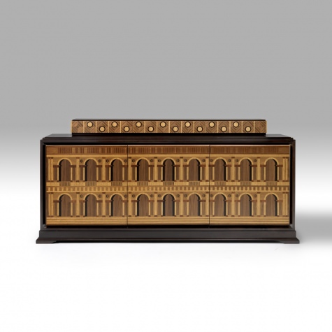 "Basilica Palladiana" inlayed sideboard in wood, available with upstand